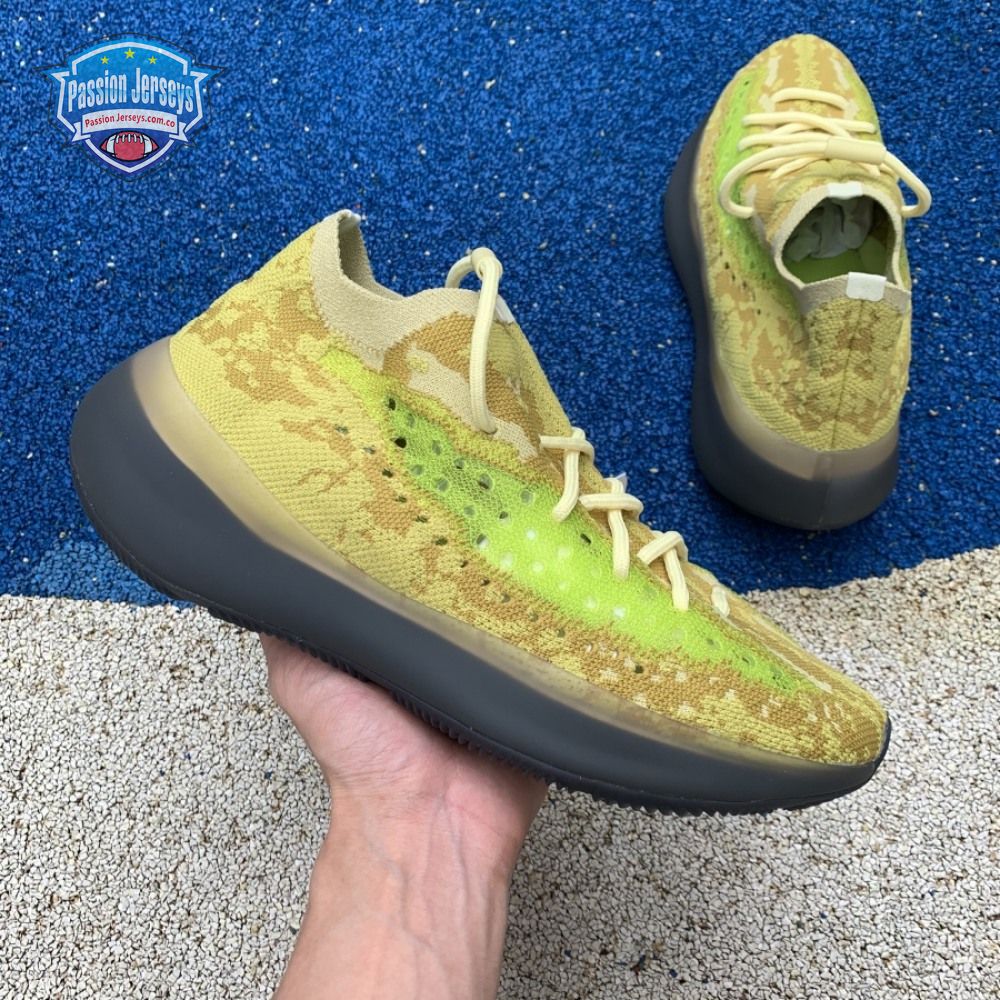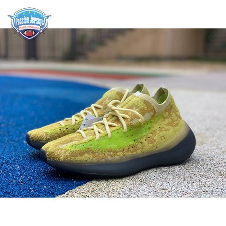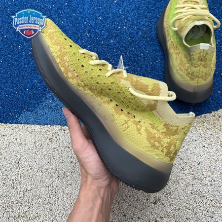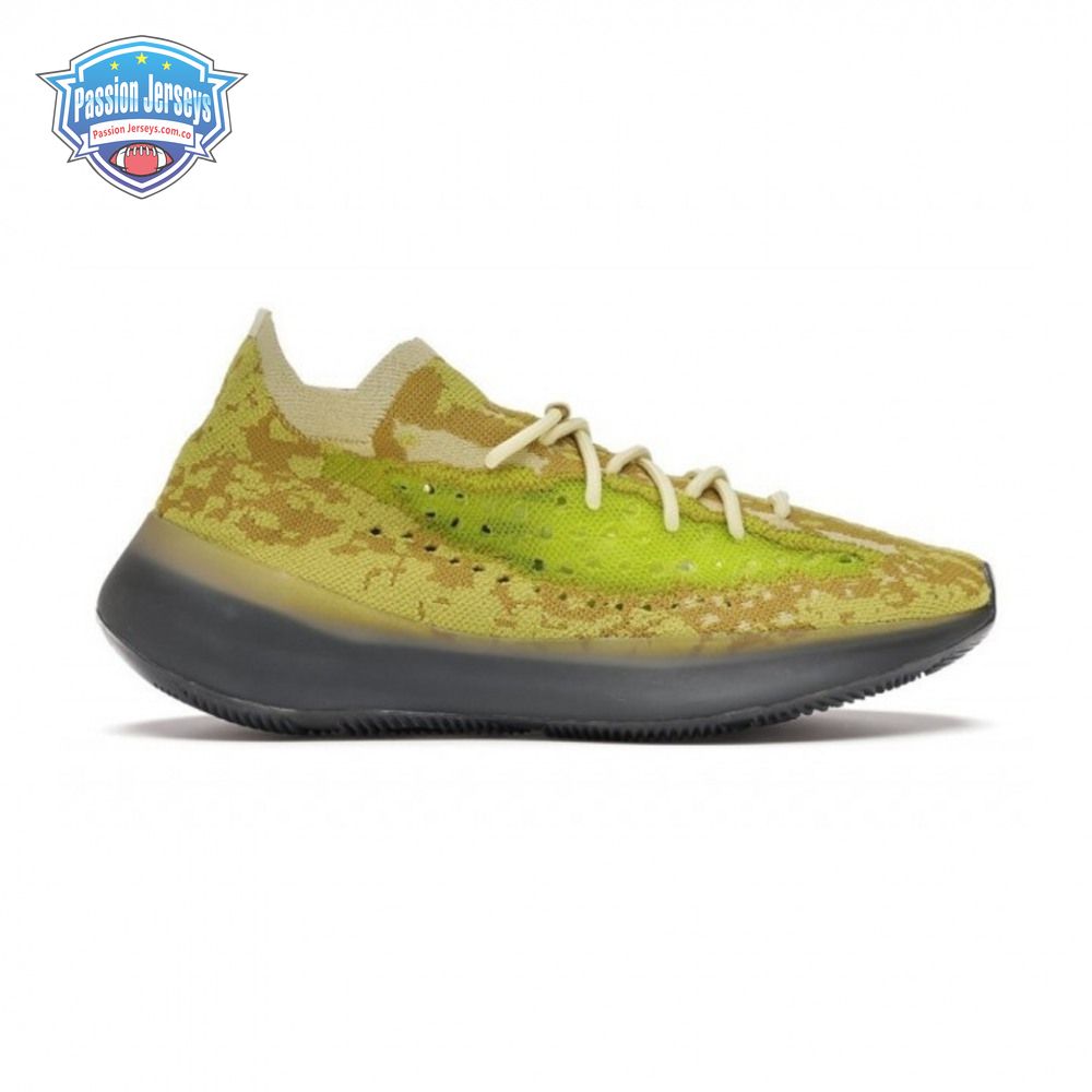 The adidas Yeezy Boost 380 "Hylte" features an eye-catching color scheme that strays from the signature Yeezy palette, which traditionally leans heavily on muted earth tones. A splash of fluorescent green is applied to the the sneaker"s translucent monofilament window, contrasted by the camo-like tan and yellow composition that makes up the Primeknit upper. Standard Boost cushioning is enveloped in grey rubber and reinforced with a herringbone-traction outsole. The Yeezy Boost 380 "Hylte" is a regional exclusive and only launched in North America and Latin America.