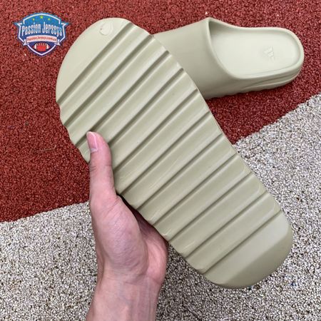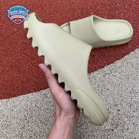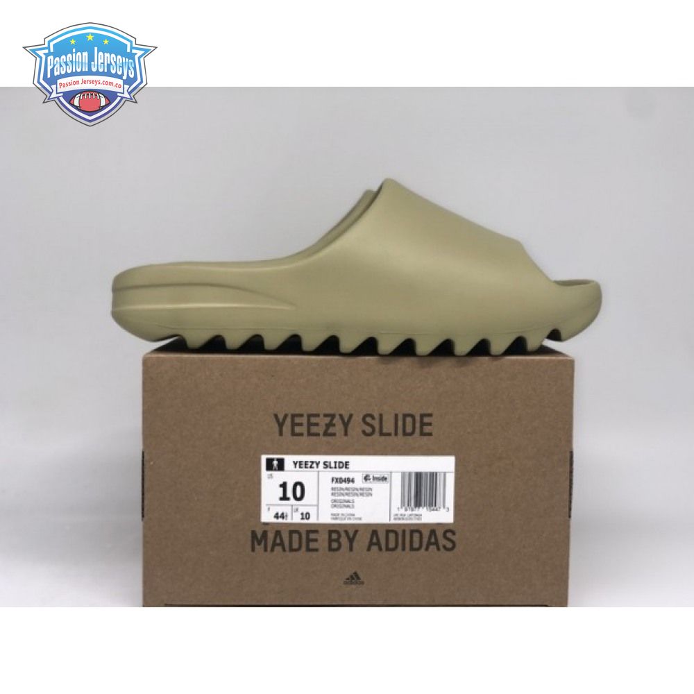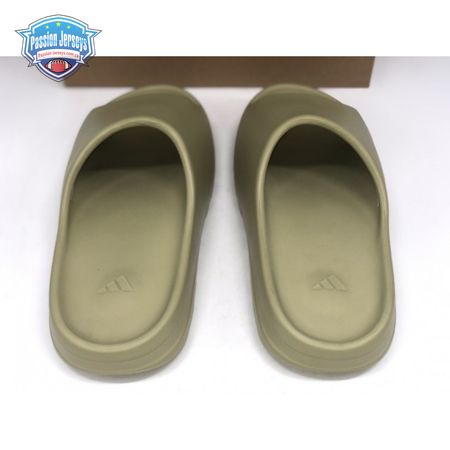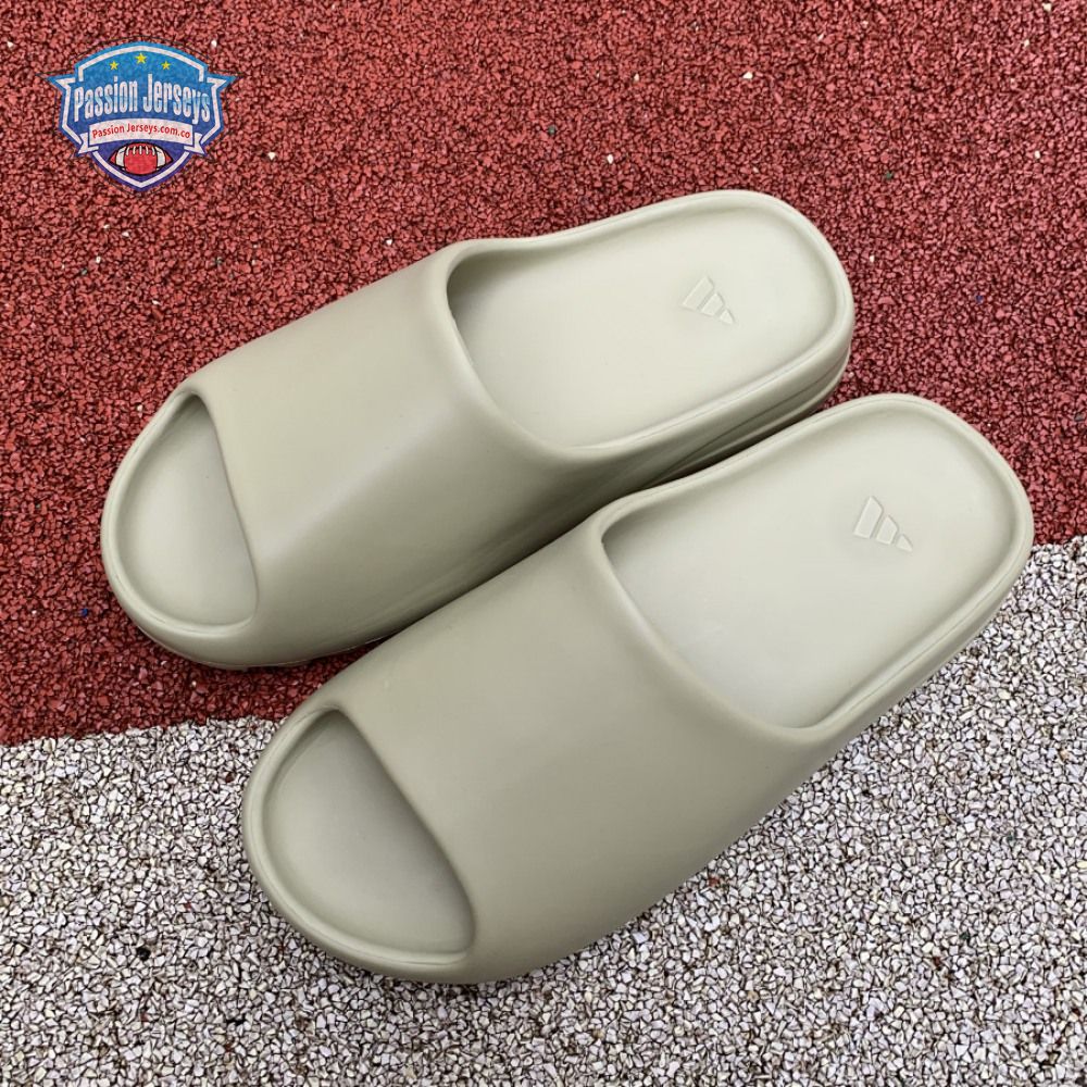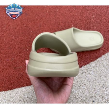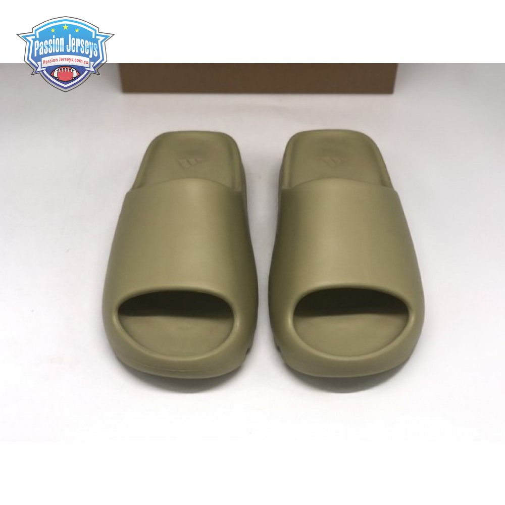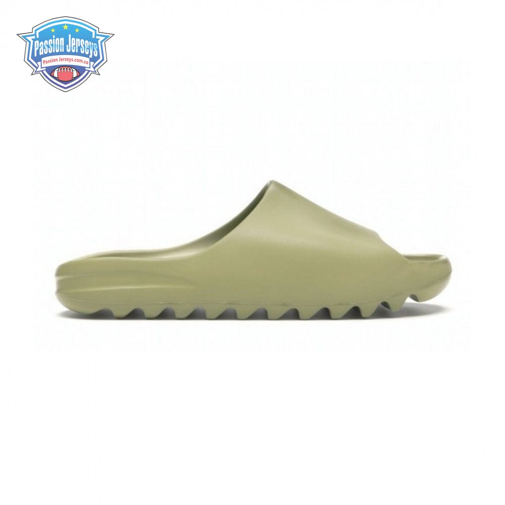 The Yeezy Slide 'Resin' showcases Kanye West"s minimalist interpretation of an athletic sandal. A monochromatic finish in a subtle green hue is applied to the slip-on silhouette, constructed from EVA foam for lightweight durability. The footbed delivers added comfort with a soft top layer, etched with adidas" three-stripe branding at the heel. Underfoot, the outsole is formed with horizontal grooves for enhanced traction.