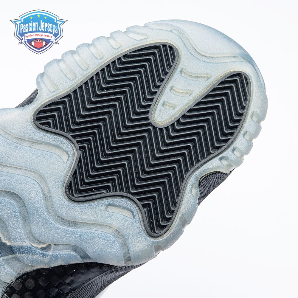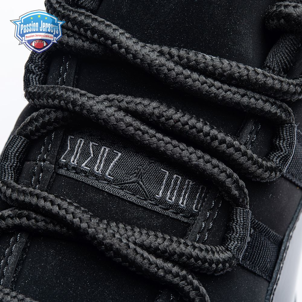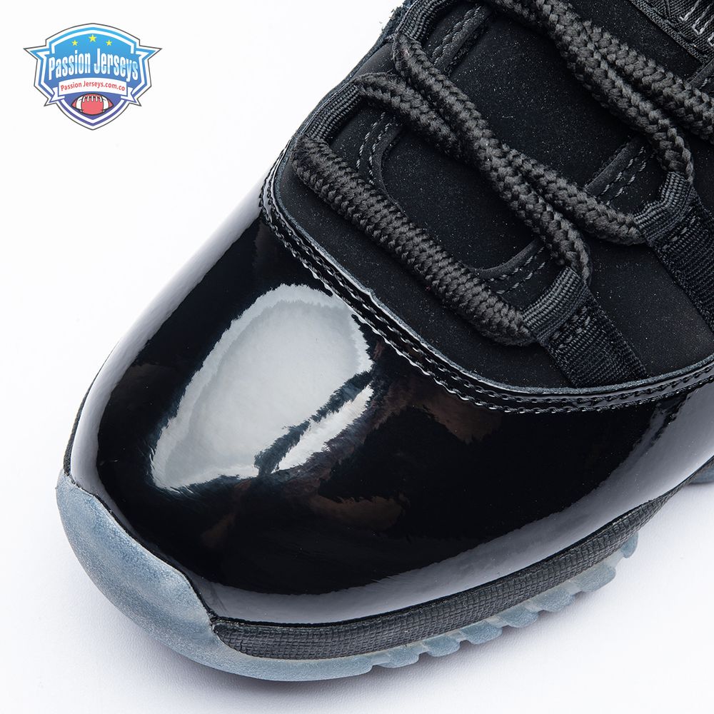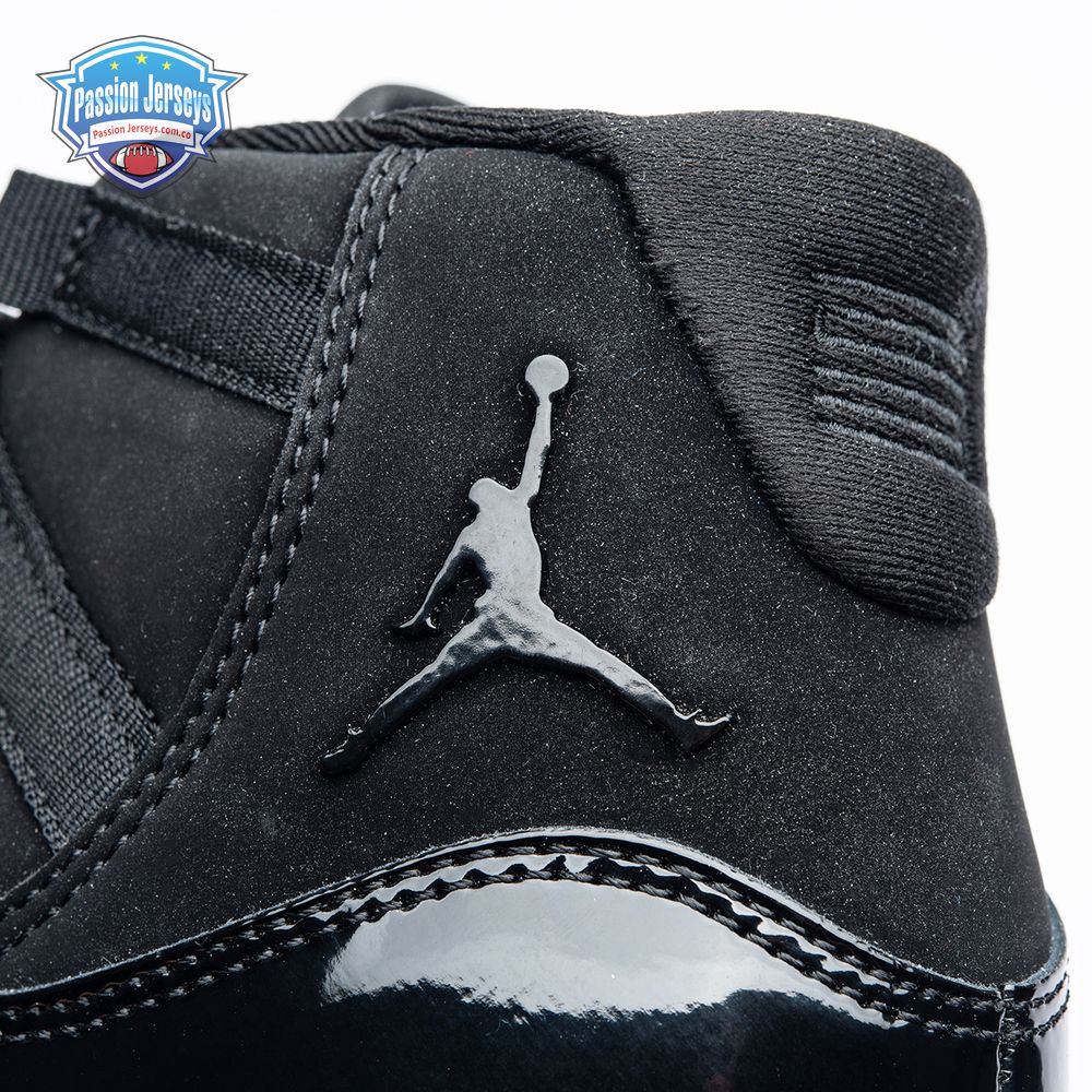 First teased in 2011 as a sample from the Air Jordan Blackout Collection, the Air Jordan 11 Retro 'Cap and Gown' was finally made available to the public in 2018. The name refers its formal look, designed to be worn for occasions such as graduation ceremonies"its laces are even inspired by graduation cords. The all-black model features a patent leather and premium nubuck upper atop an icy blue outsole.
