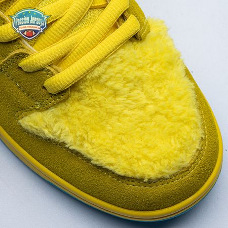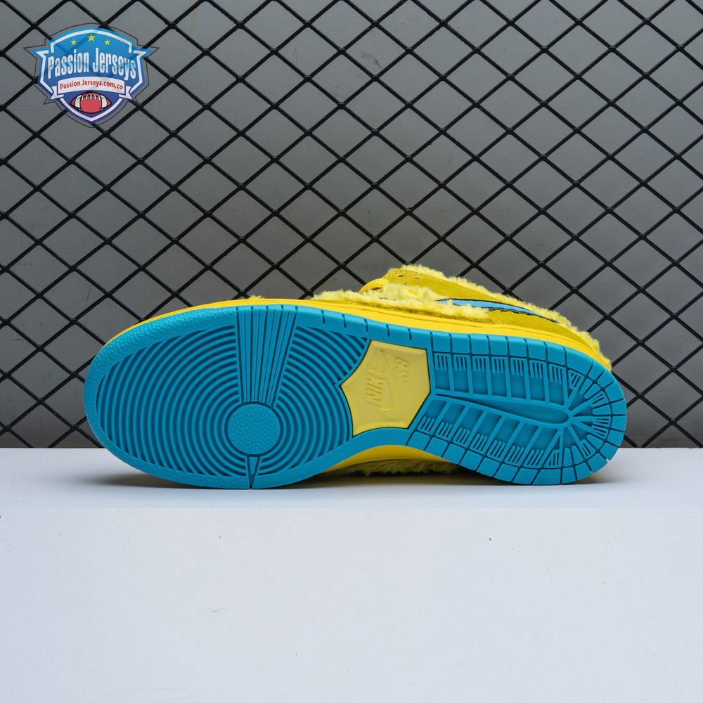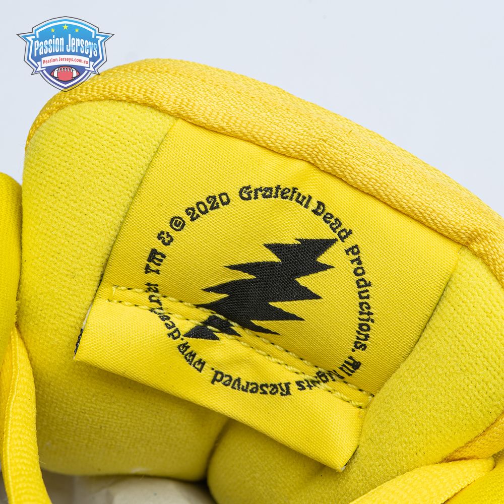 Developed in collaboration with the iconic San Francisco jam band, the Grateful Dead x Nike Dunk Low SB "Yellow Bear" features a unique design inspired by the back cover of "History of the Grateful Dead, Volume One (Bear"s Choice)," a live album originally released in 1973. A vibrant yellow finish is applied to the furry upper, fortified with tonal suede overlays and mounted atop a matching yellow foam midsole. Contrasting blue hits appear on the jagged Swoosh, rubber outsole and tongue, the latter furnished with a hidden stash pocket.
