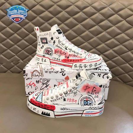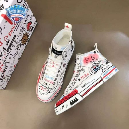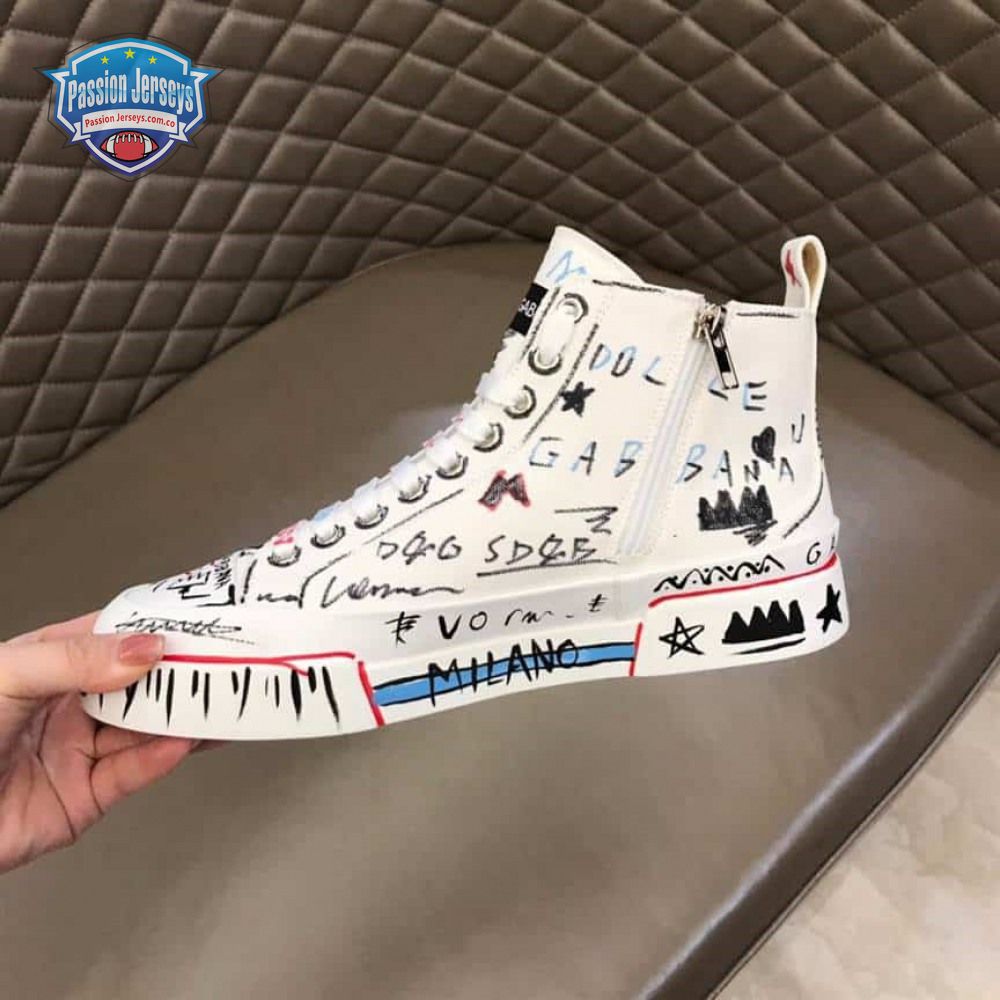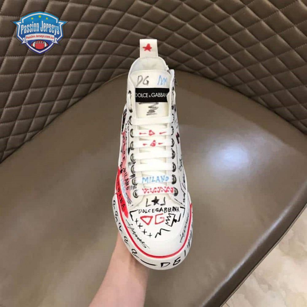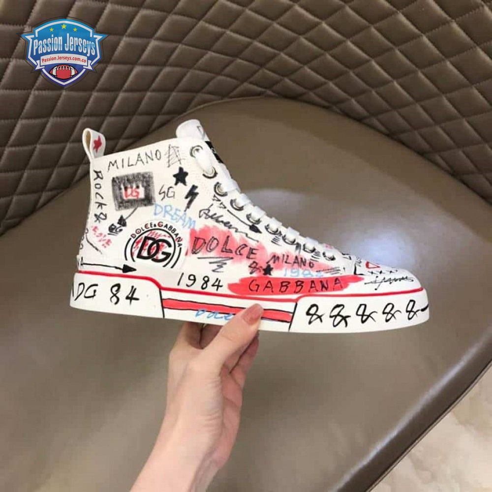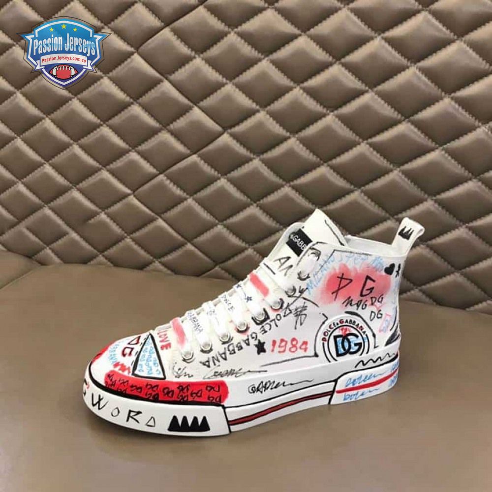 DOLCE AND GABBANA HAND-PAINTED GRAFFITI CANVAS PORTOFINO LIGHT MID-TOP SNEAKERS - DG111
