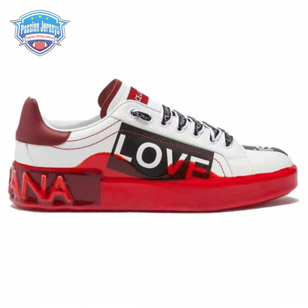 DOLCE AND GABBANA LEATHER ROYAL LOVE PRINT SNEAKERS IN WHITE - DG103