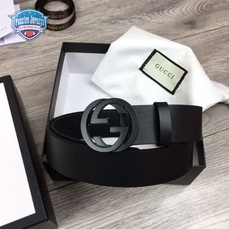 GUCCI LEATHER BELT WITH INTERLOCKING G BUCKLE - B31