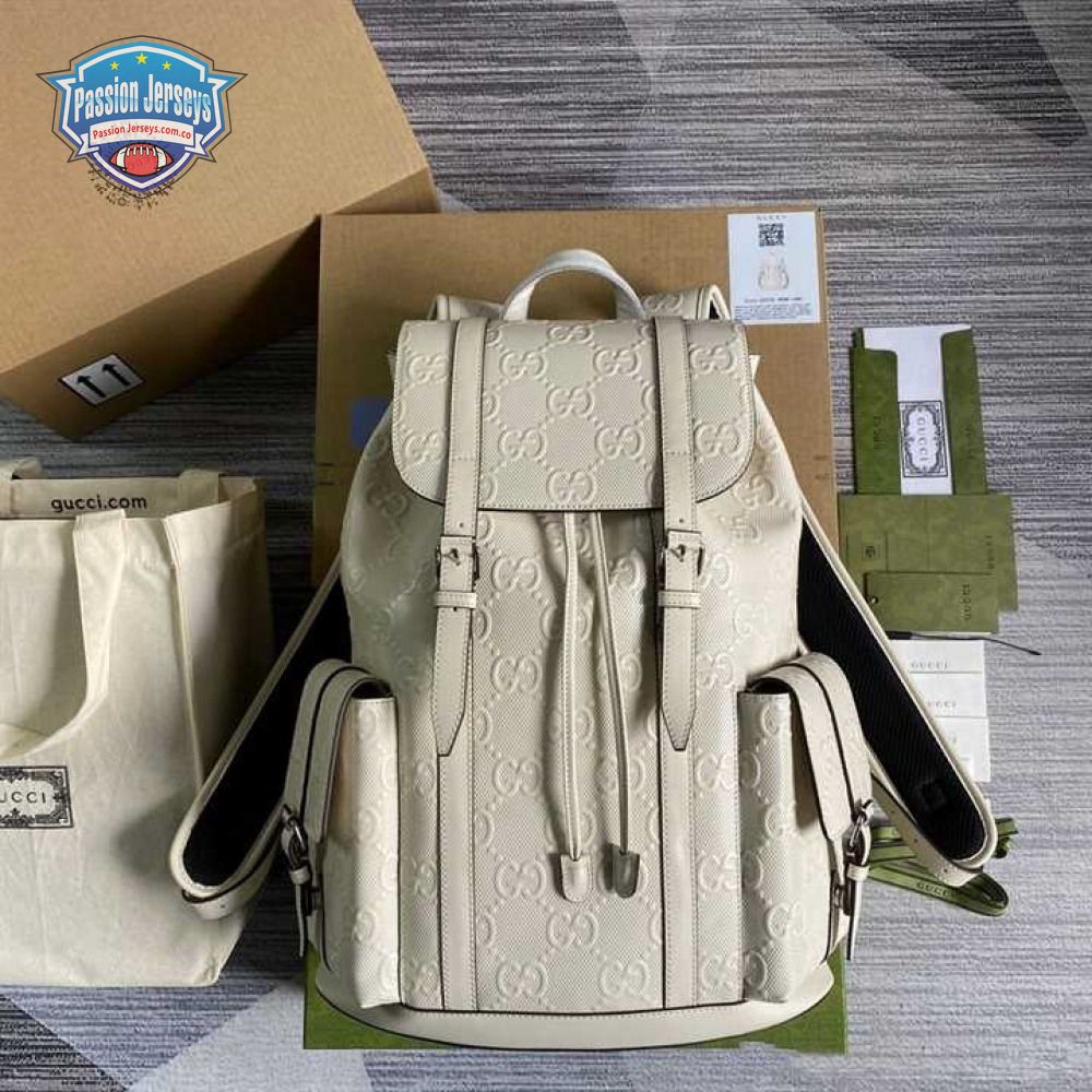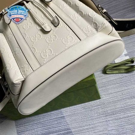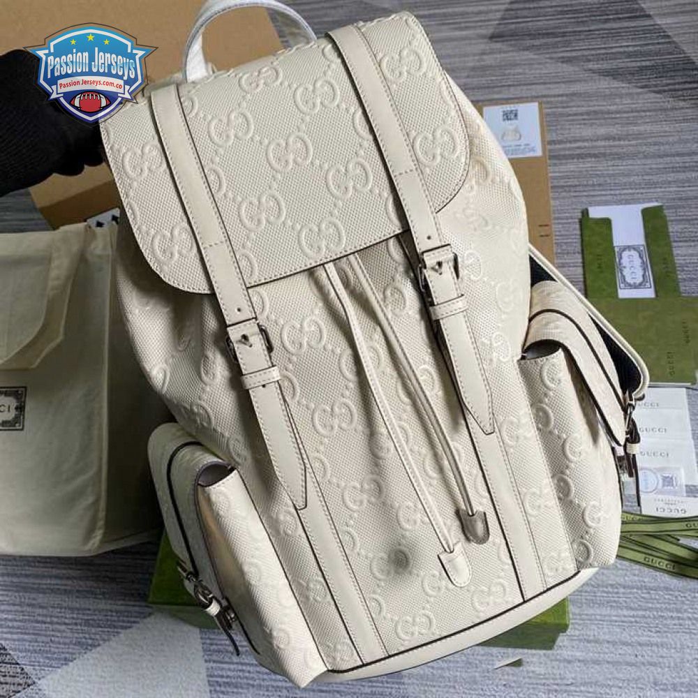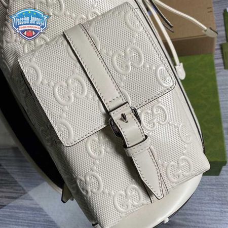 Gg Embossed Backpack In White Leather GBP013
