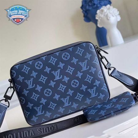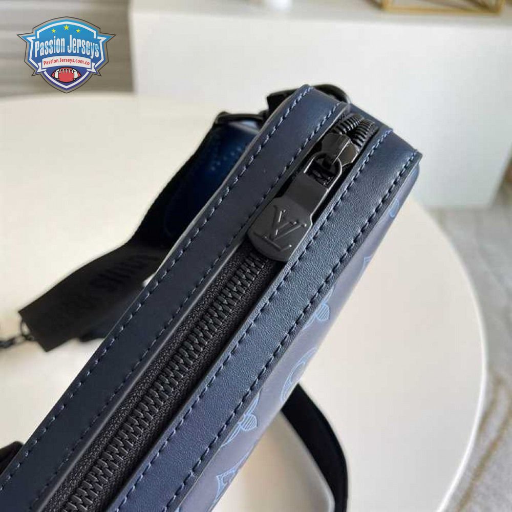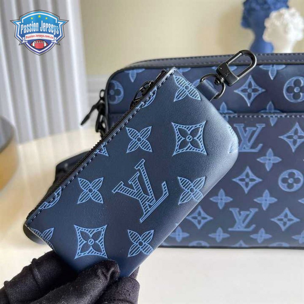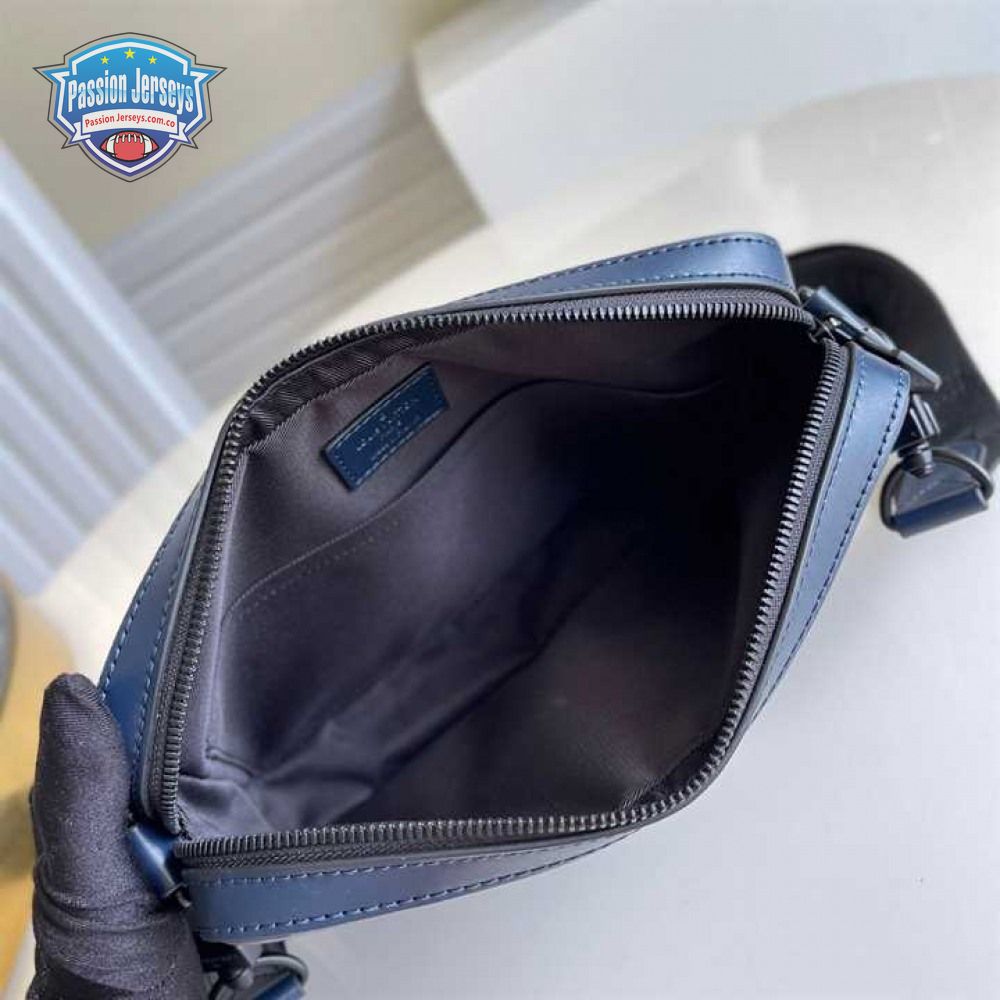 duo messenger bag navy blue monogram shadow cowhide leather - mb01