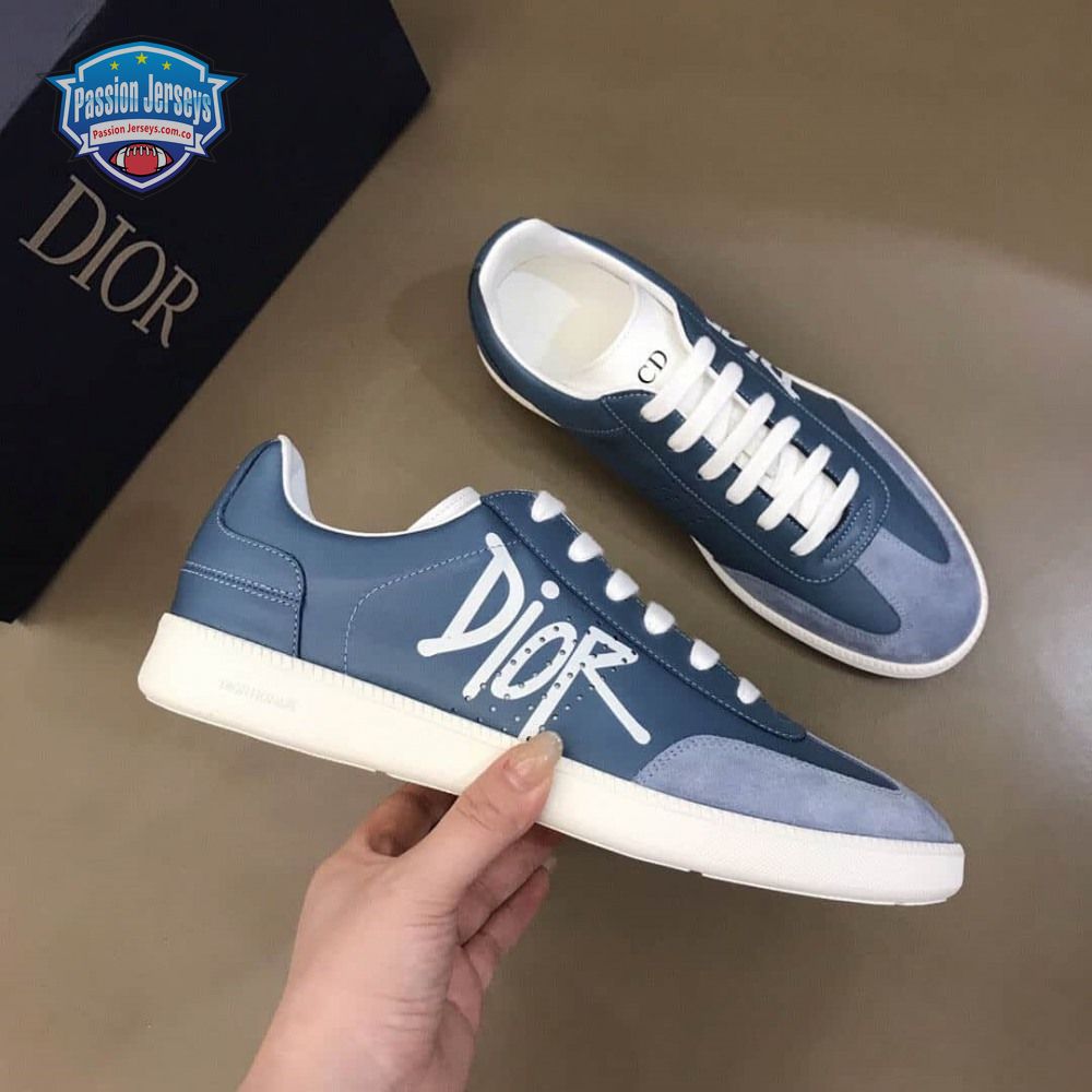 DIOR B01 SNEAKER BLUE SMOOTH CALFSKIN AND SUEDE WITH DIOR AND SHAWN SIGNATURE - CD57