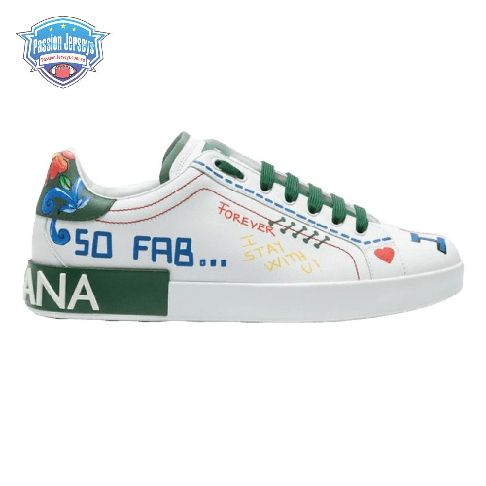 DOLCE & GABBANA PRINTED CALFSKIN PORTOFINO SNEAKERS - DG32