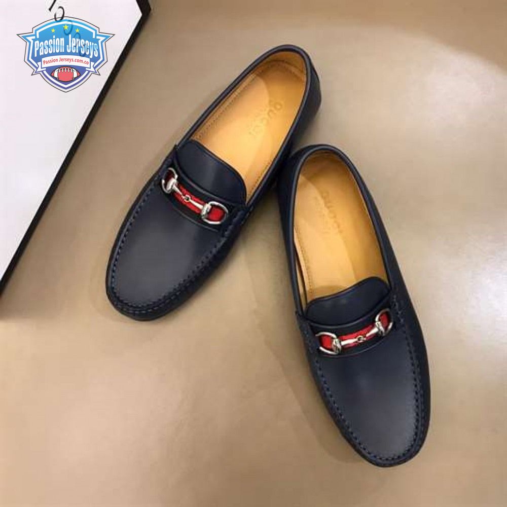 GUCCI LEATHER DRIVER WITH WEB NAVY - LDG006